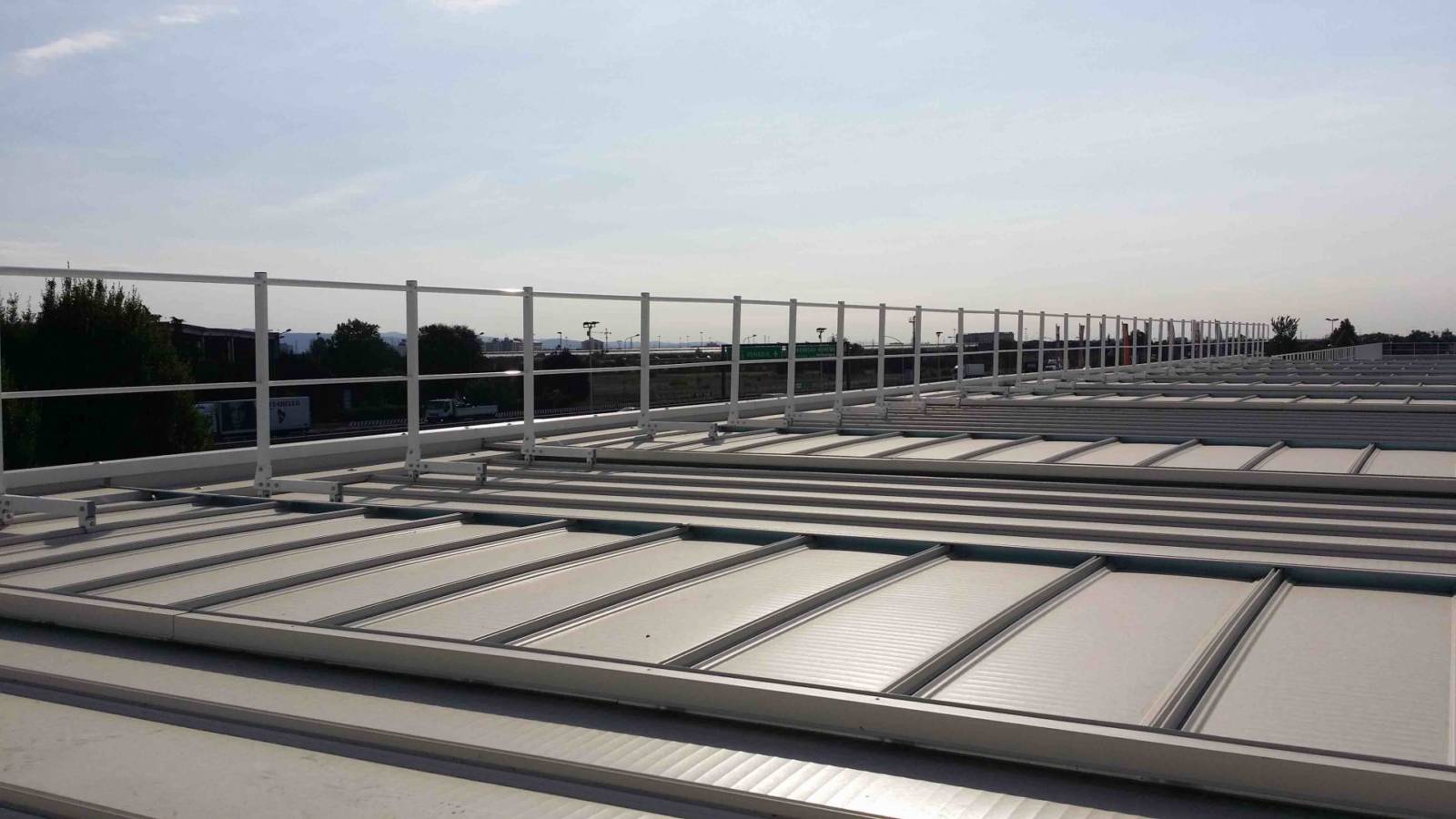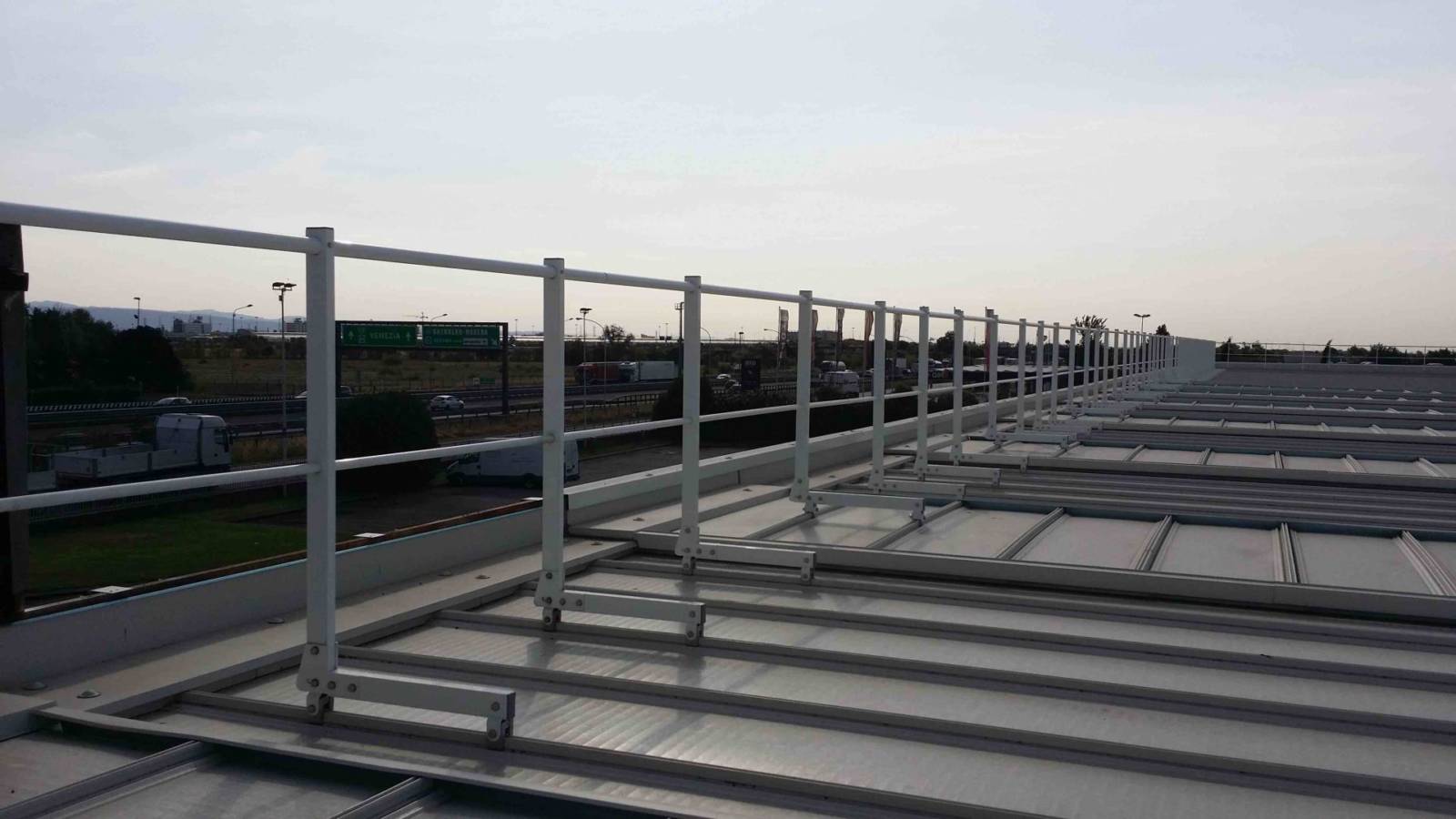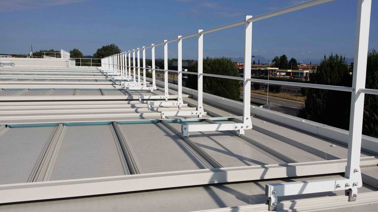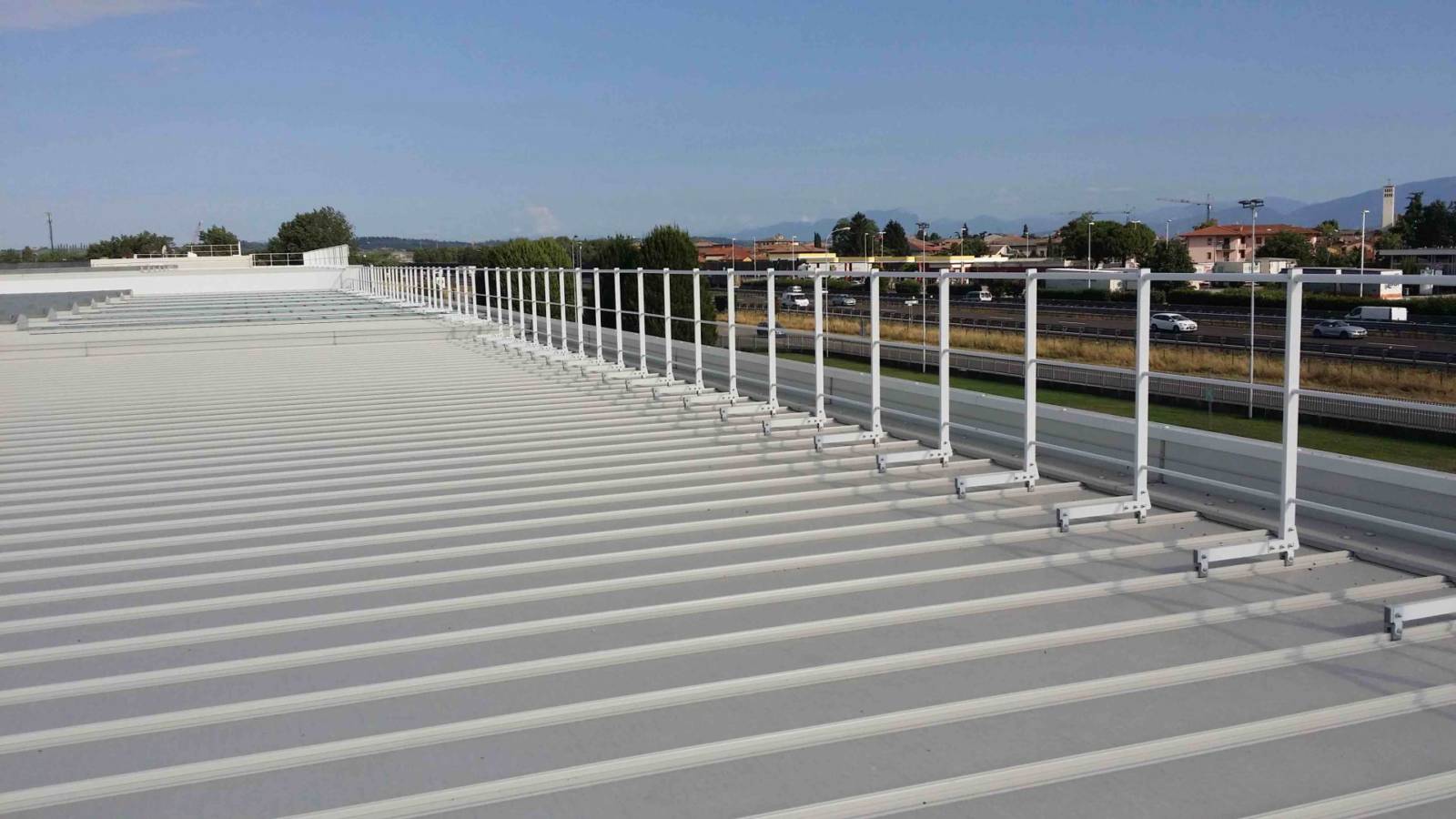 Parapetto testato e certificato su lastre metalliche Riverclack® – Rivergrip® in conformità con le condizioni di garanzia del fabbricante ISCOM® Spa.