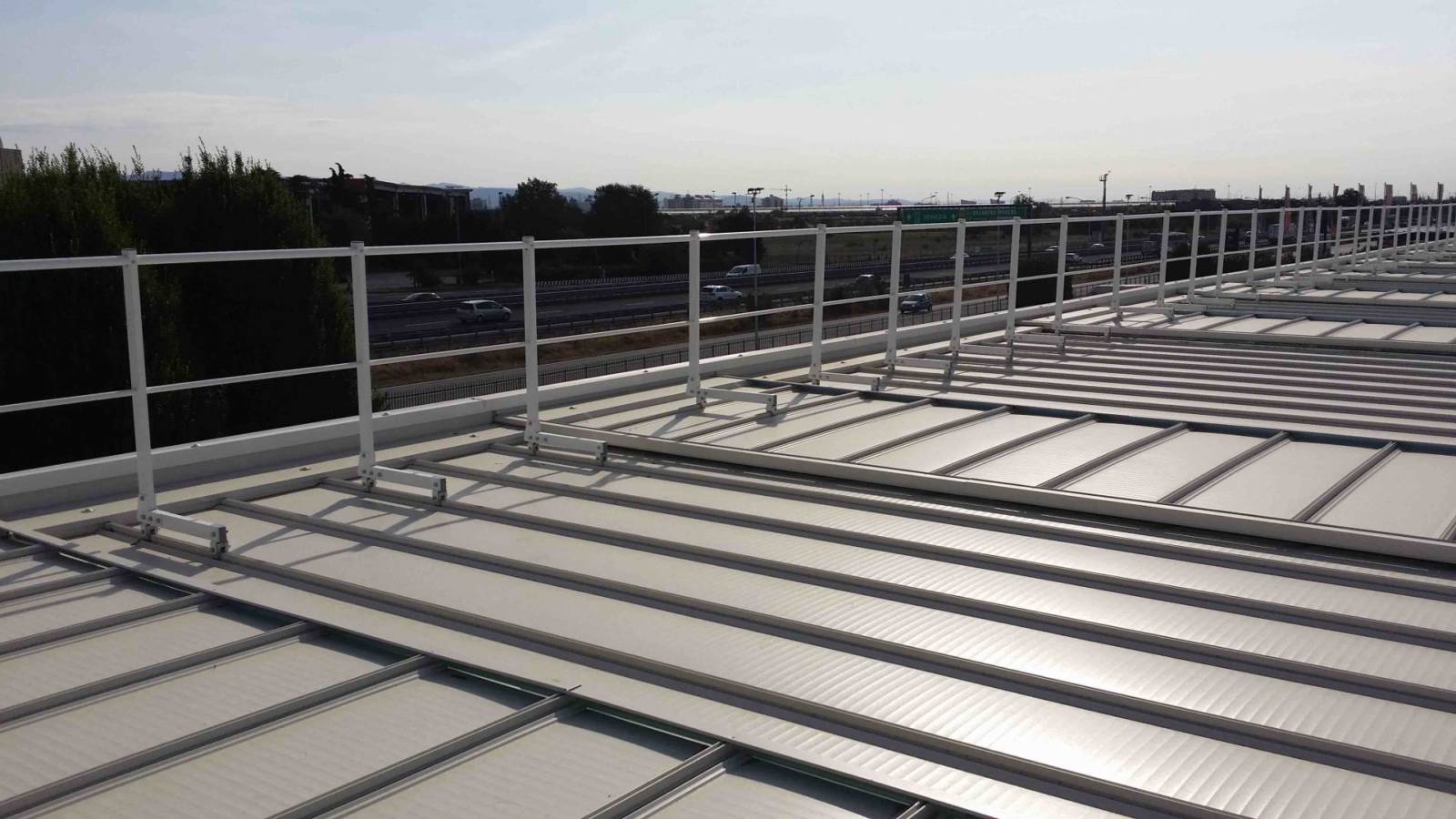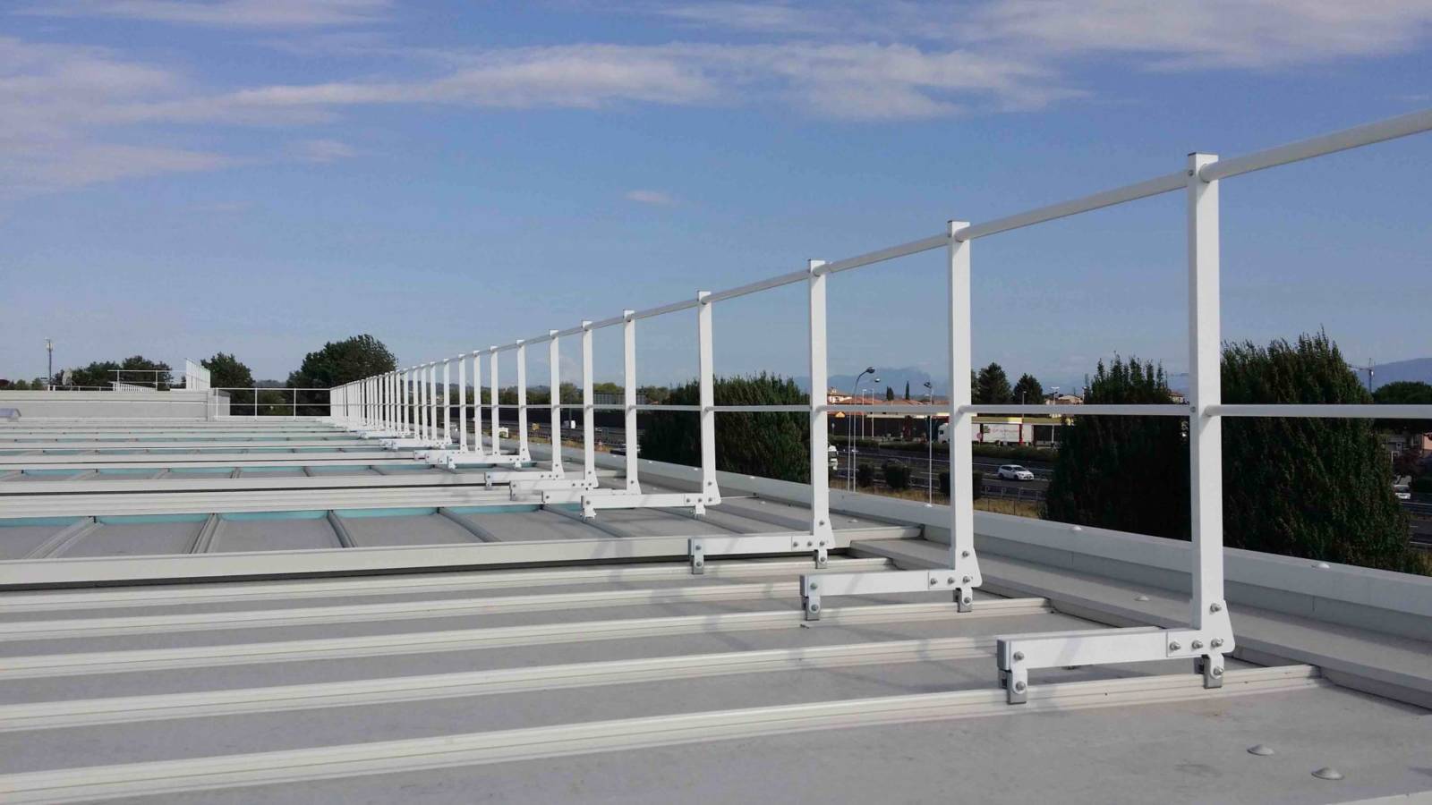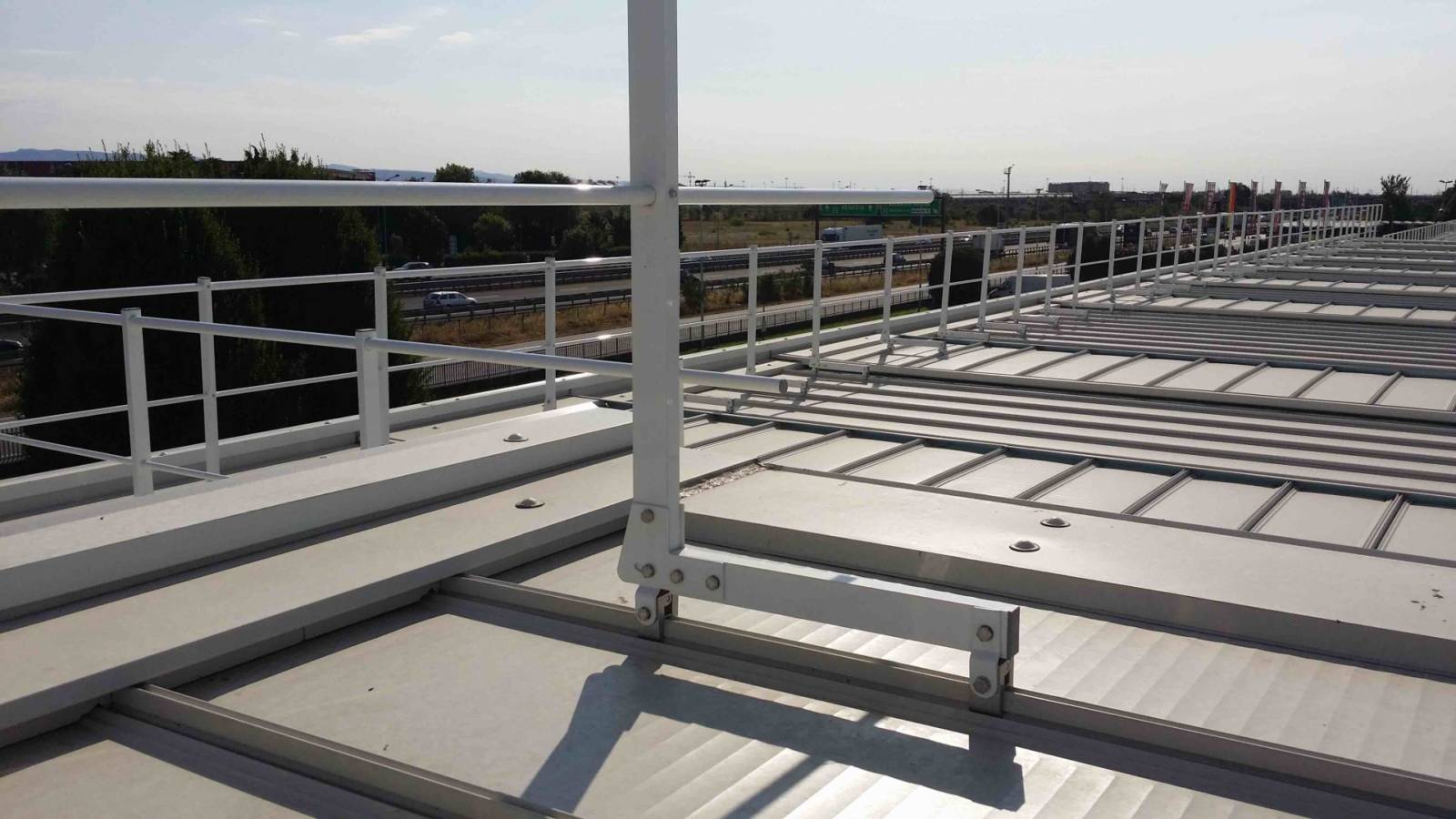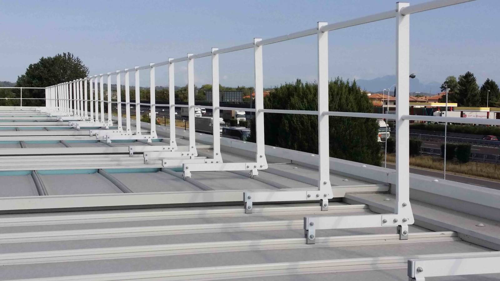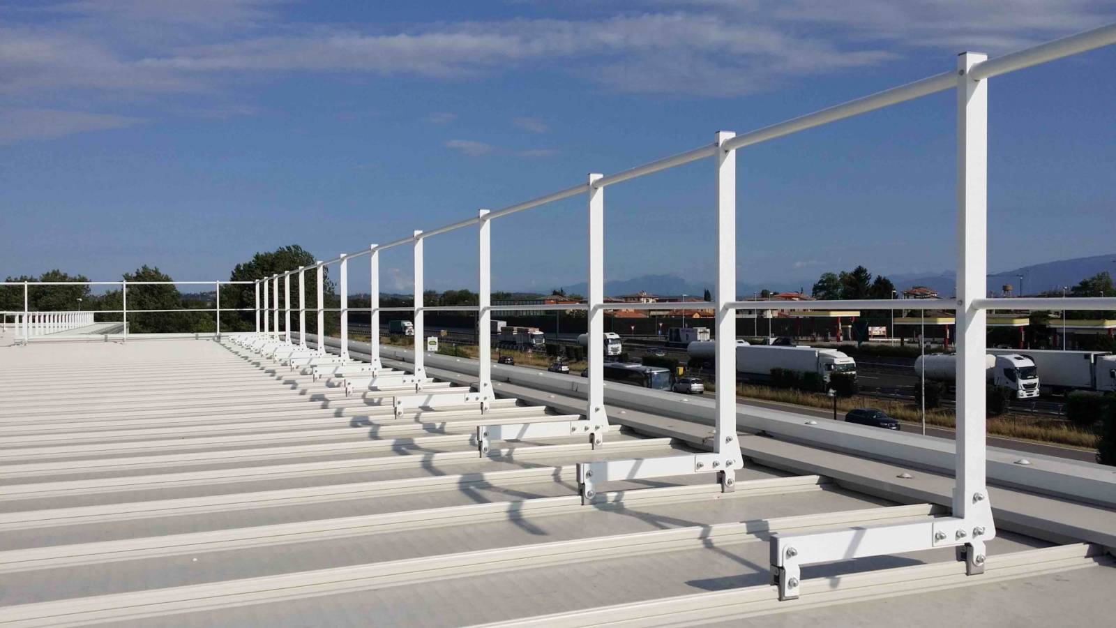 Parapetto testato e certificato su lastre metalliche Riverclack® – Rivergrip® in conformità con le condizioni di garanzia del fabbricante ISCOM® Spa.