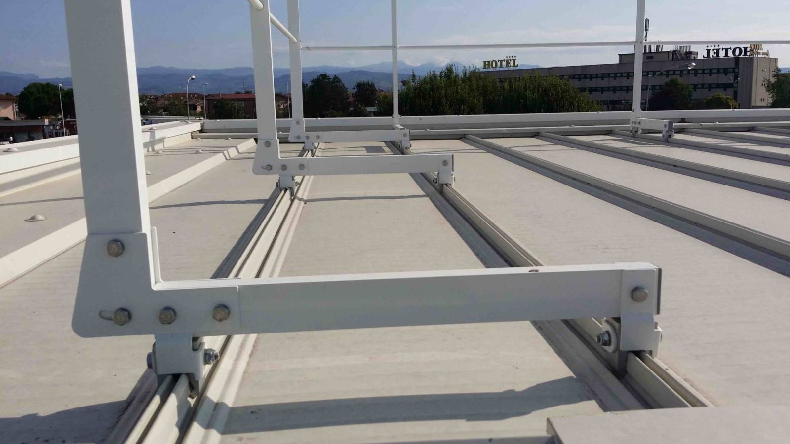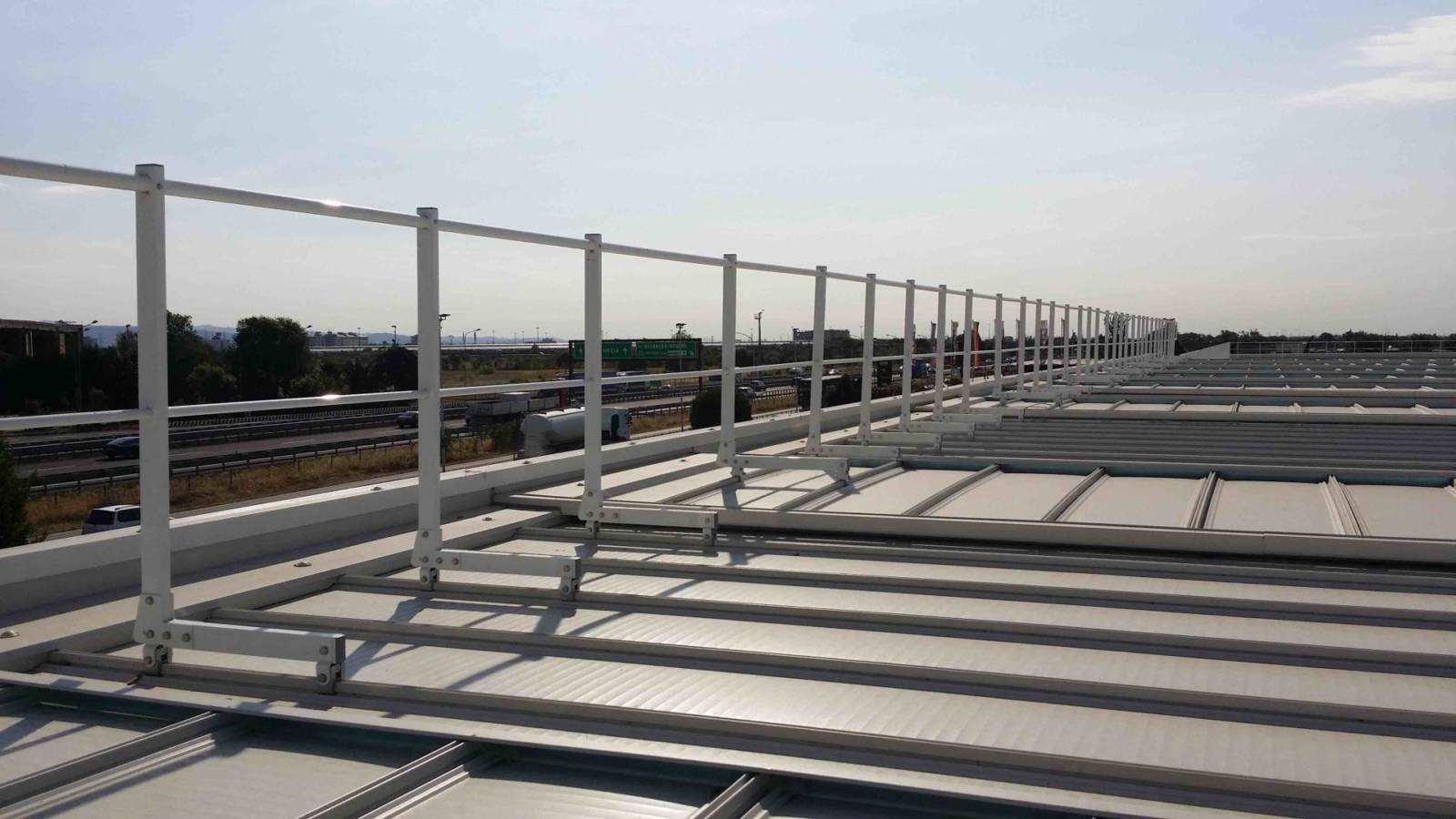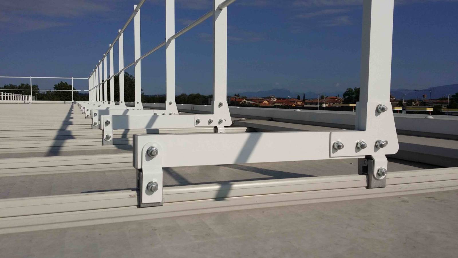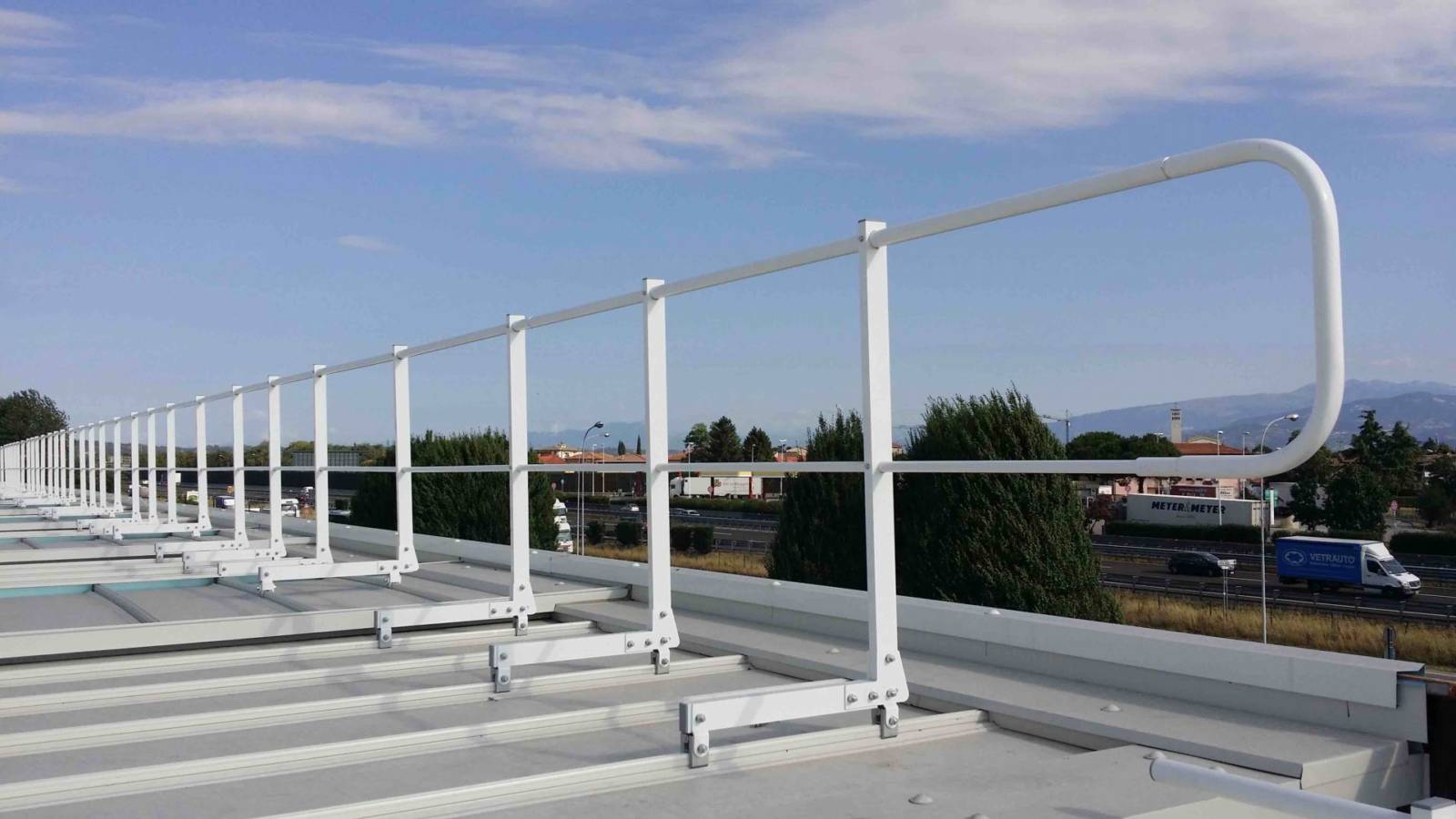 Parapetto testato e certificato su lastre metalliche Riverclack® – Rivergrip® in conformità con le condizioni di garanzia del fabbricante ISCOM® Spa.