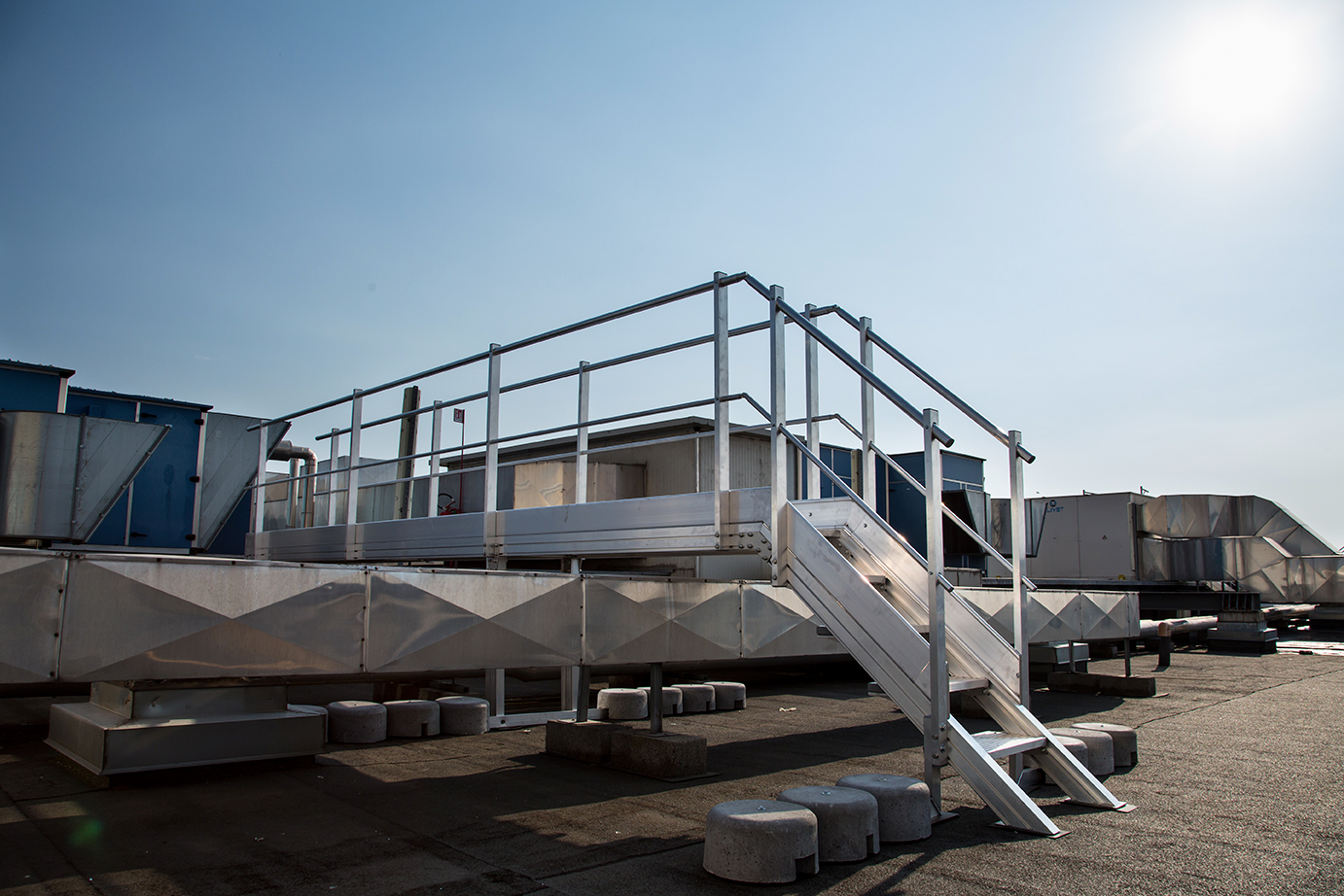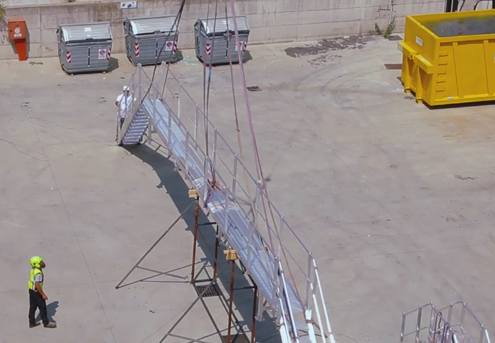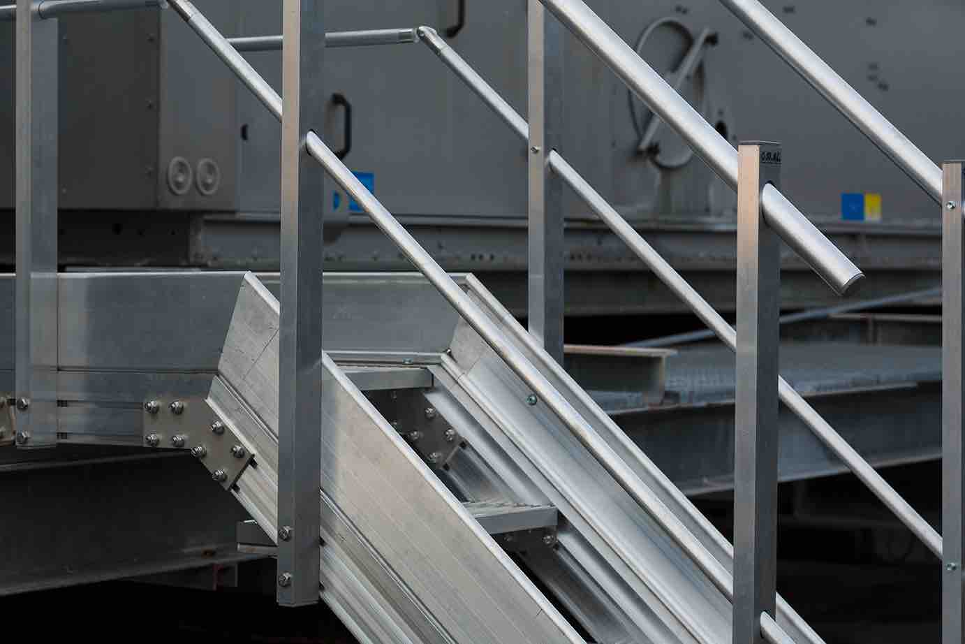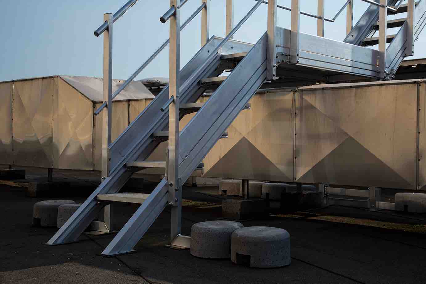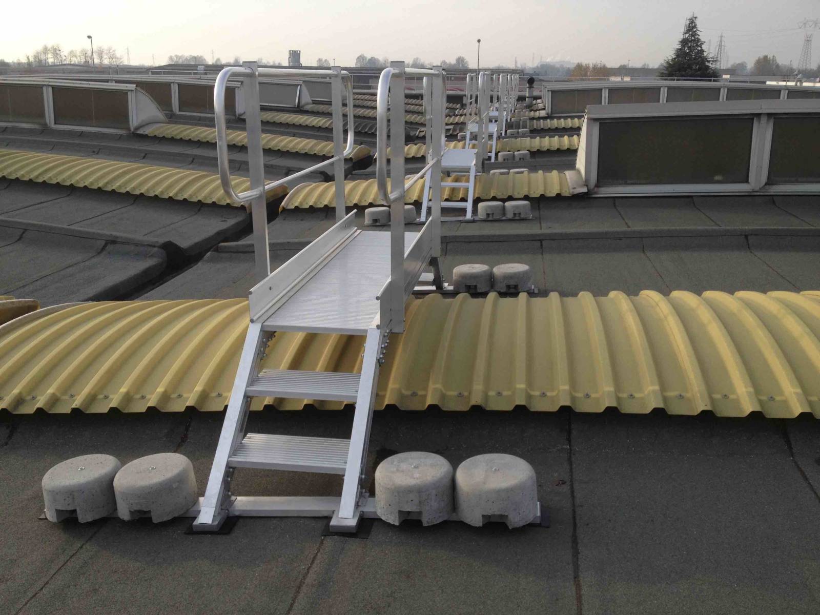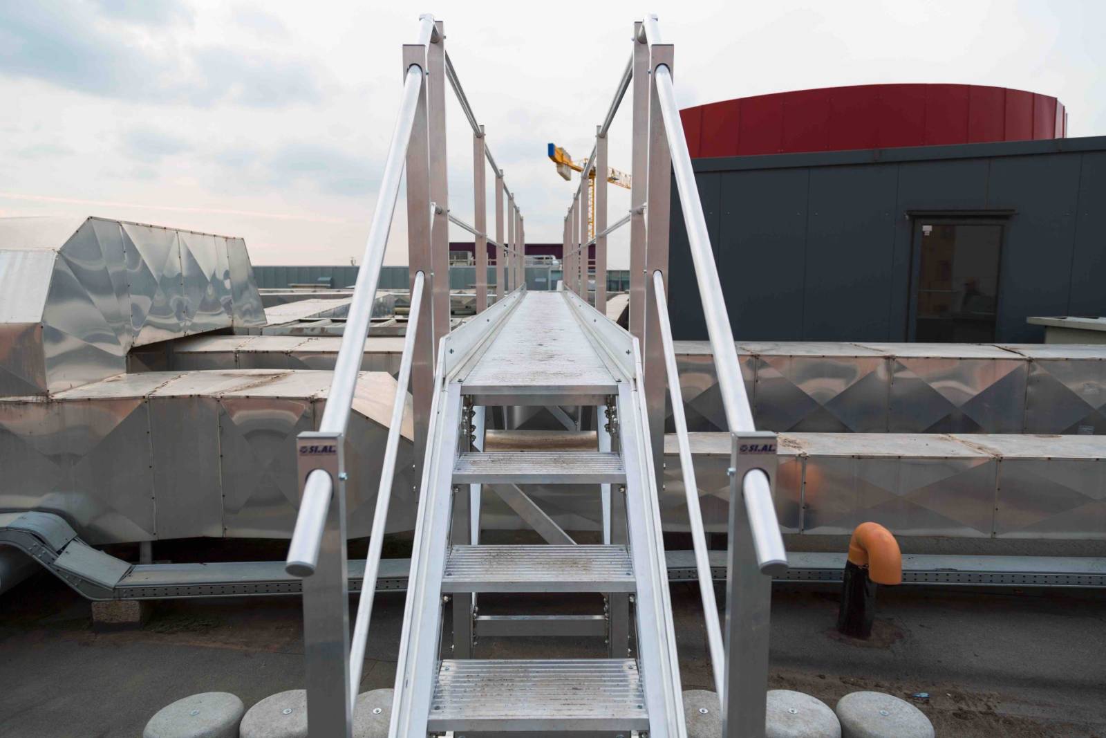 La passerella SICURGUARD® WALK con parapetto laterale è assemblabile nella configurazione per creazione di scale a ponte per scavalcamento. La modularità dei componenti, la leggerezza dei materiali in alluminio e la semplicità di assemblaggio facilitano le operazioni di posa, consentendo di ottenere percorsi di sicurezza a costi contenuti e con una resa estetica decisamente appagante.