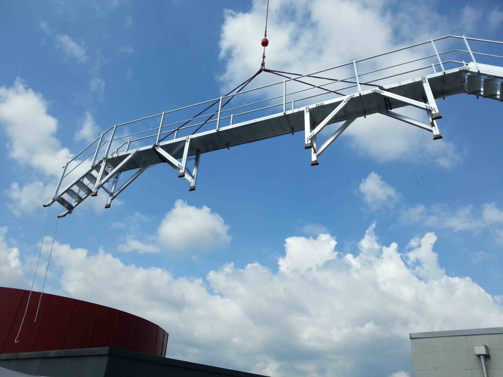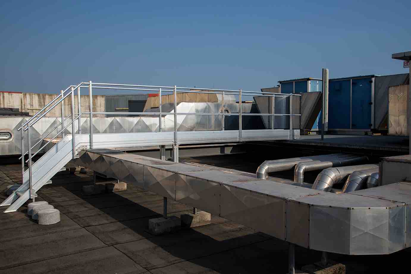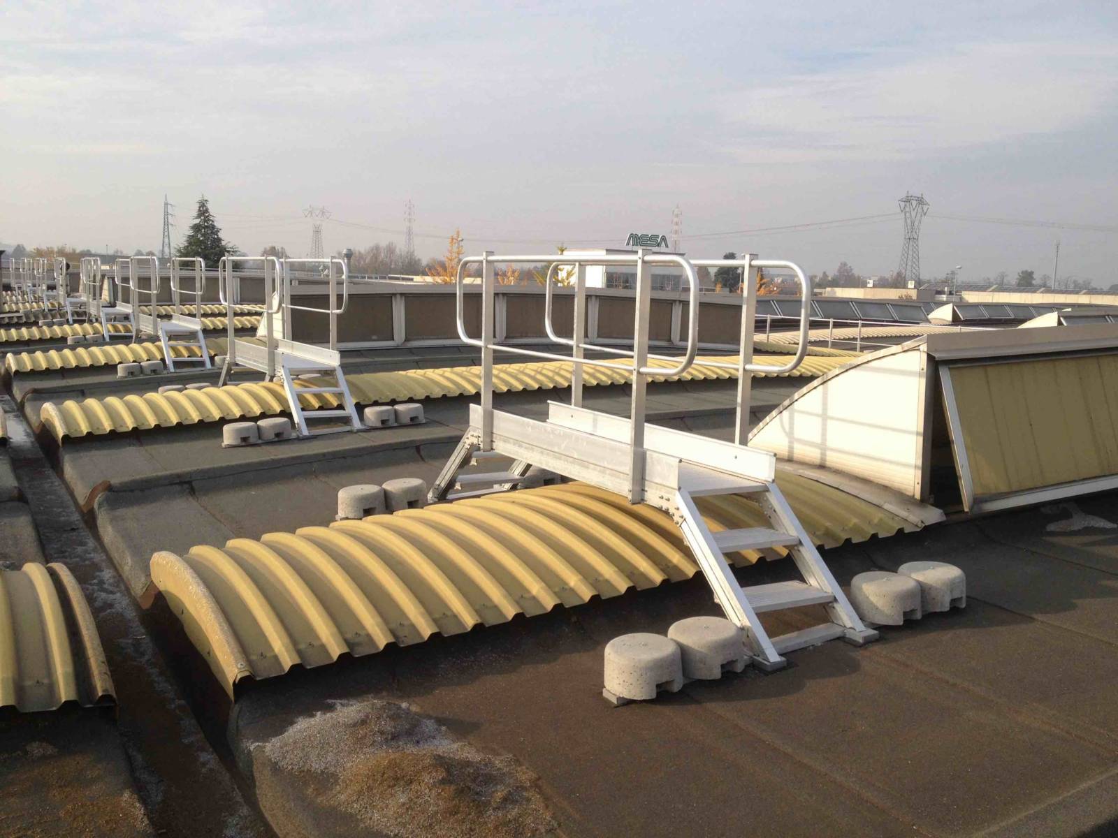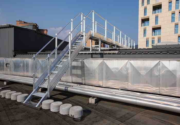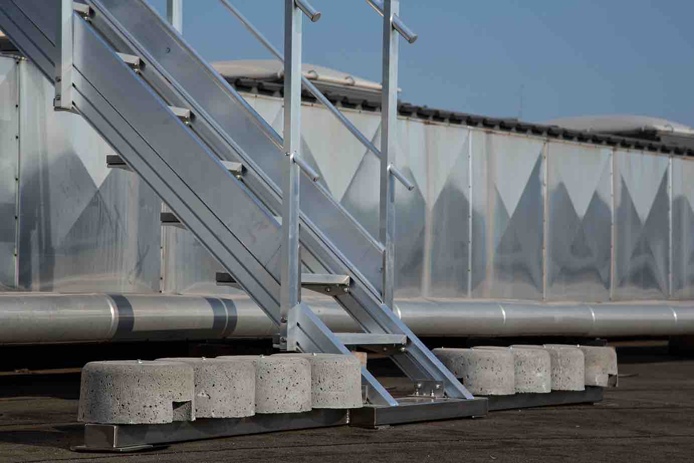 La passerella SICURGUARD® WALK con parapetto laterale è assemblabile nella configurazione per creazione di scale a ponte per scavalcamento. La modularità dei componenti, la leggerezza dei materiali in alluminio e la semplicità di assemblaggio facilitano le operazioni di posa, consentendo di ottenere percorsi di sicurezza a costi contenuti e con una resa estetica decisamente appagante.