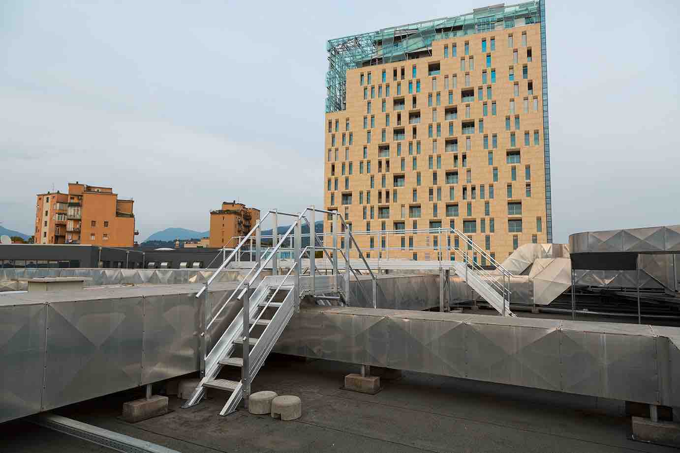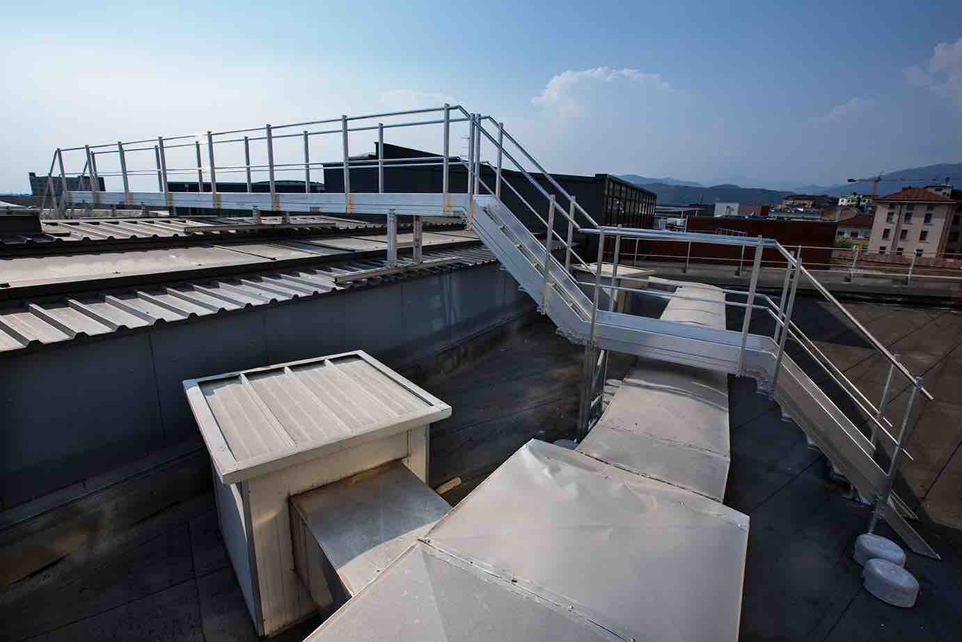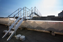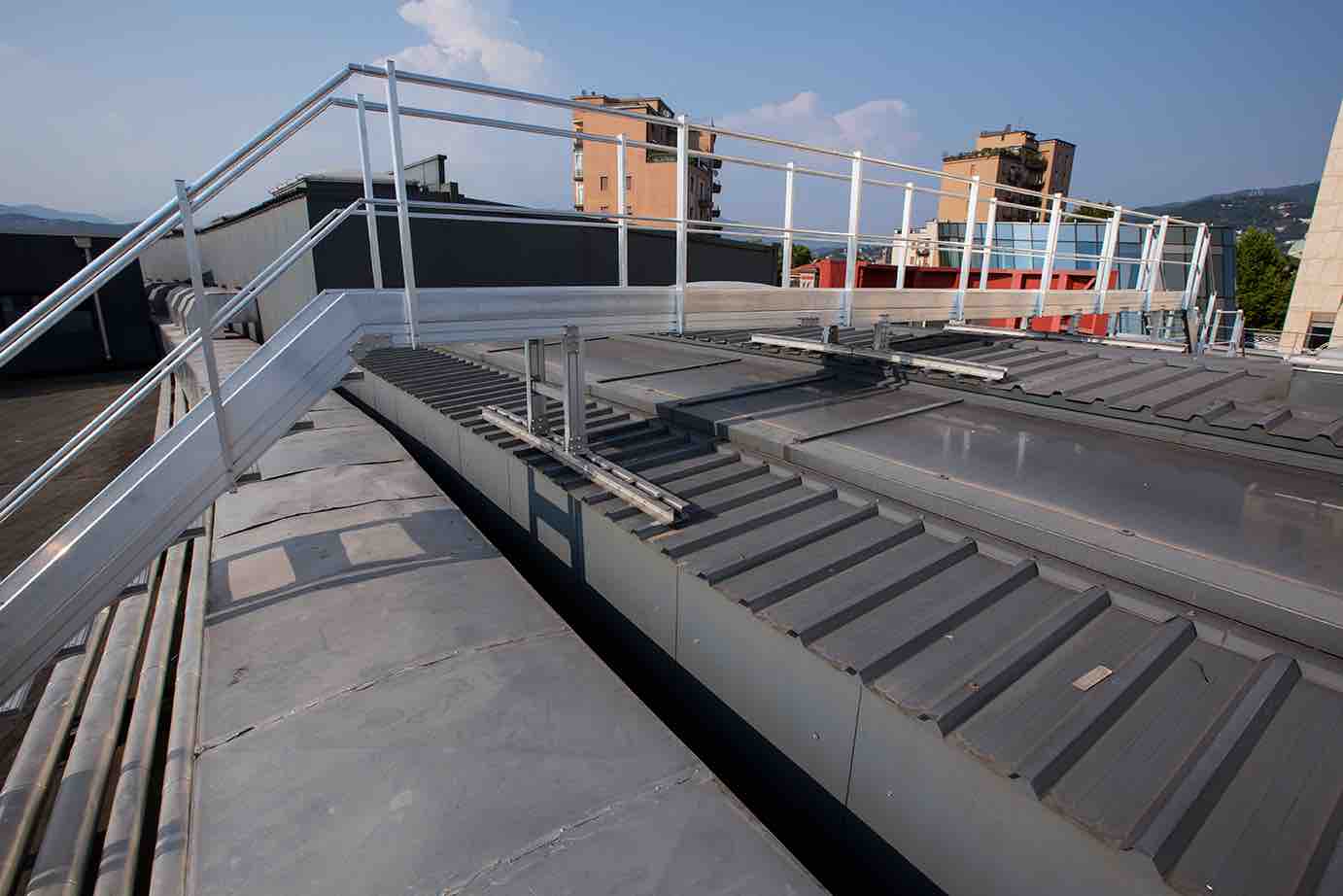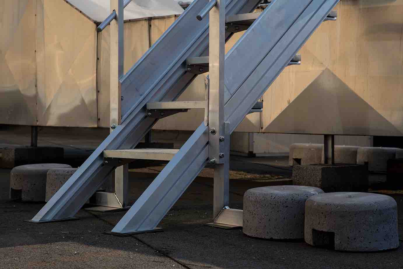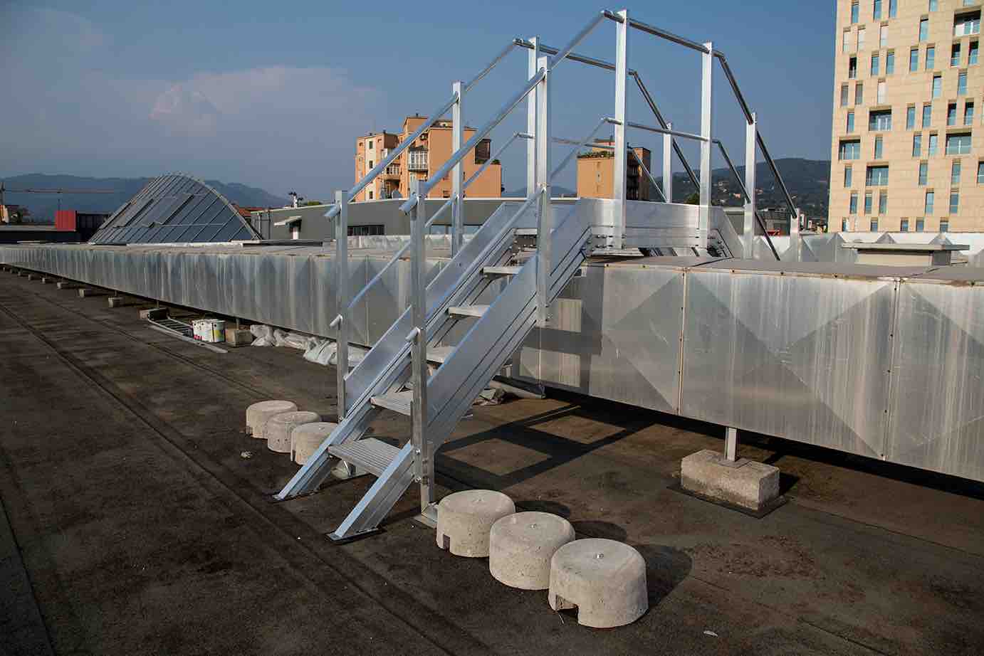 La passerella SICURGUARD® WALK con parapetto laterale è assemblabile nella configurazione per creazione di scale a ponte per scavalcamento. La modularità dei componenti, la leggerezza dei materiali in alluminio e la semplicità di assemblaggio facilitano le operazioni di posa, consentendo di ottenere percorsi di sicurezza a costi contenuti e con una resa estetica decisamente appagante.