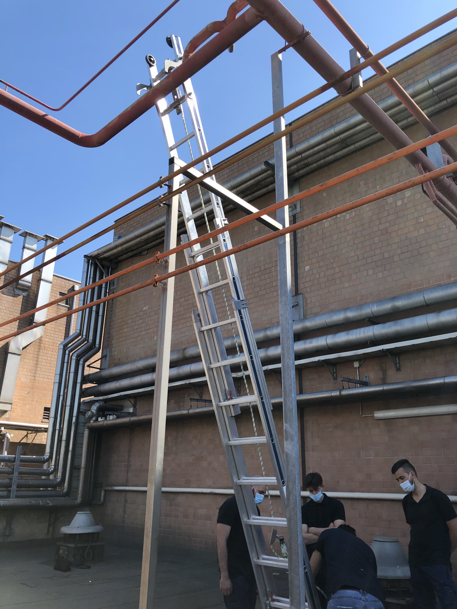 Dispositivo di ancoraggio provvisorio conforme alla norma tecnica EN 795 tipo B da applicare su scale a pioli removibili o portatili.