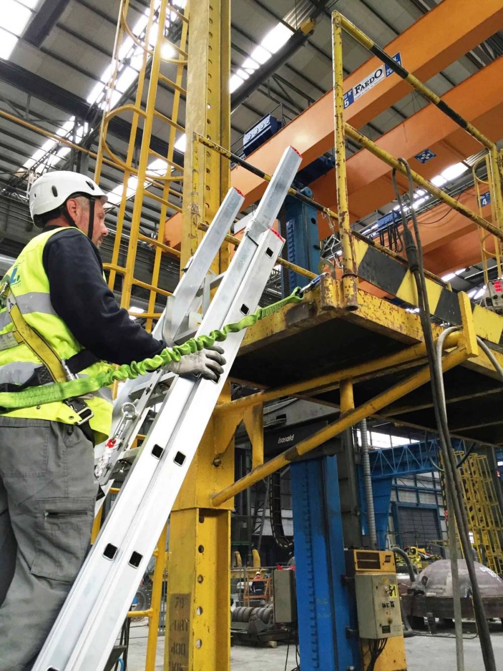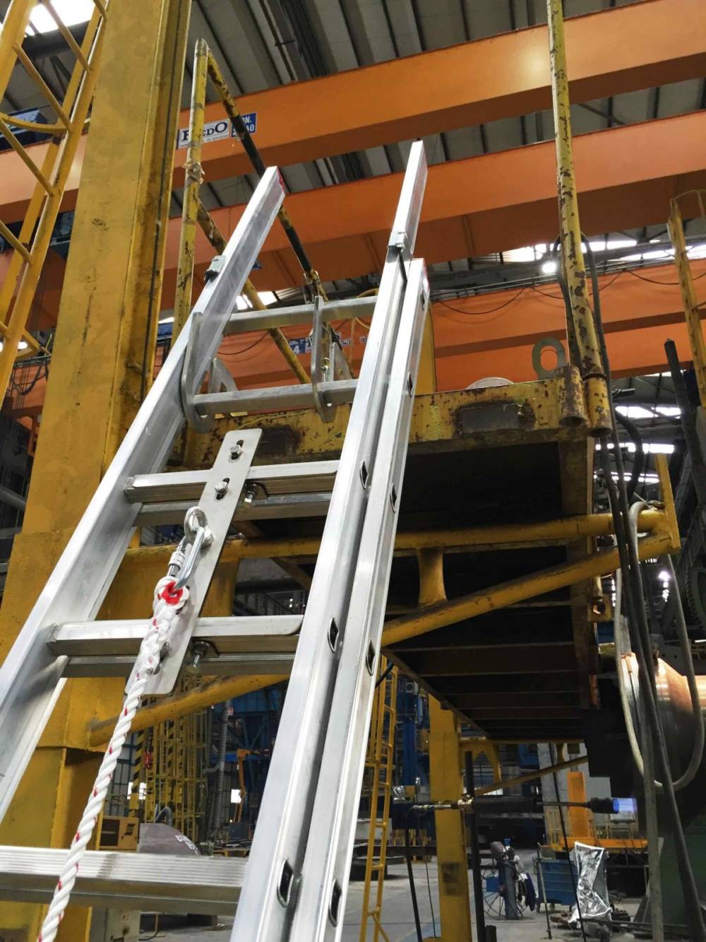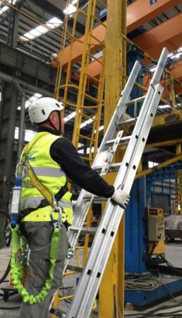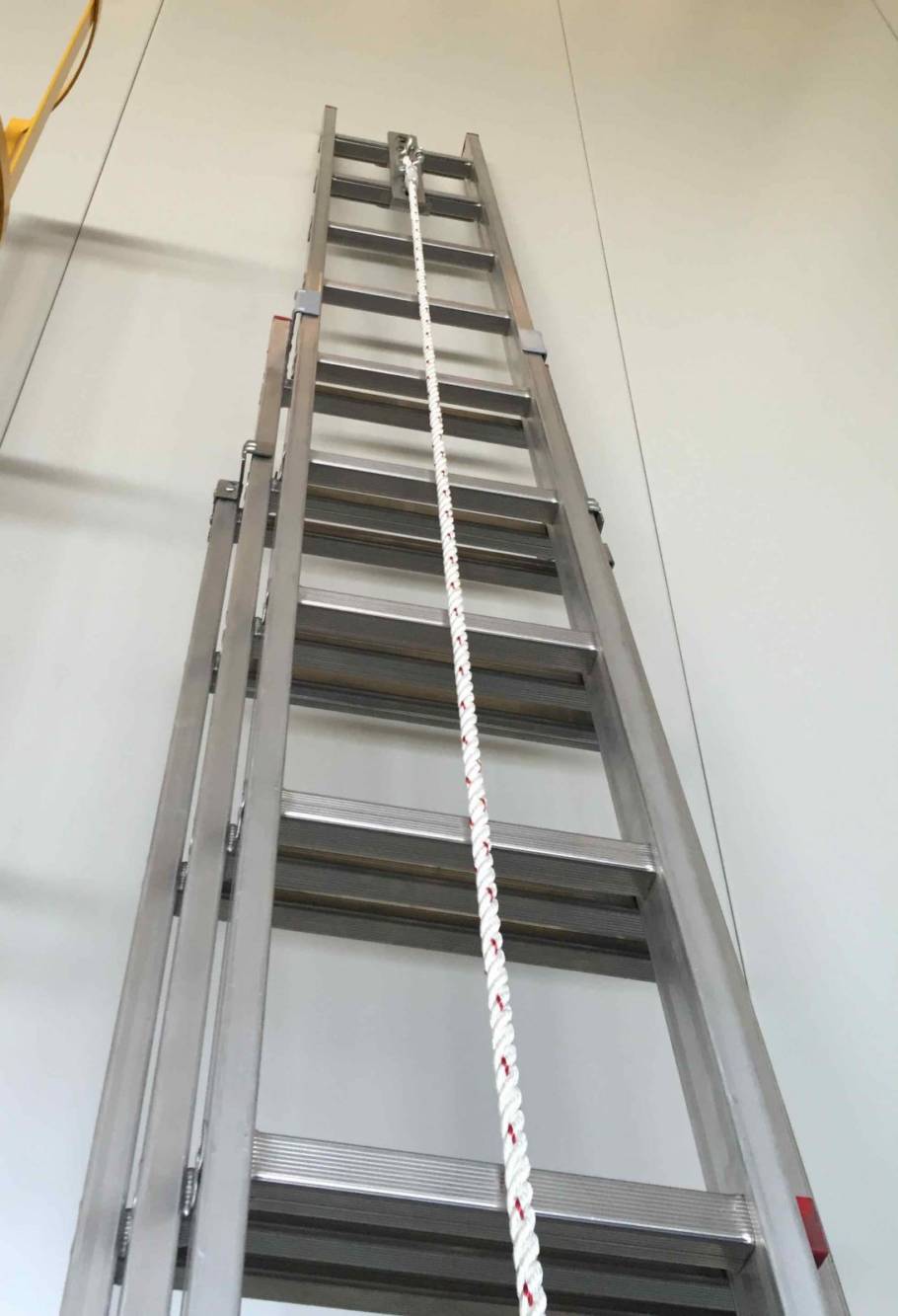 VERTICAL ROPE LINE lavora congiuntamente ad una fune di collegamento dotata di dispositivo scorrevole autobloccante conforme alla norma EN 353-2 per tutelare l’operatore da cadute durante l’utilizzo di scale a pioli portatili.