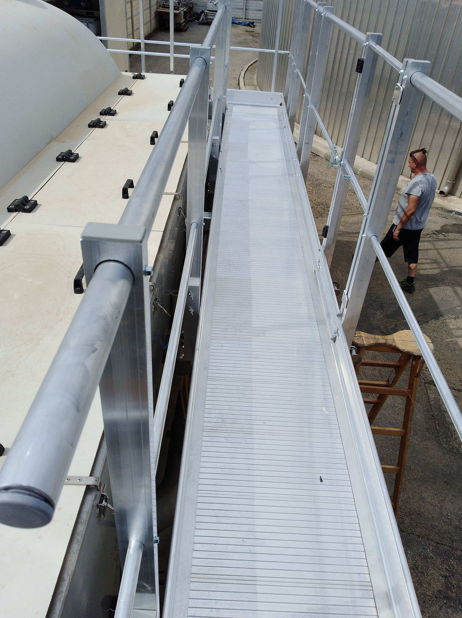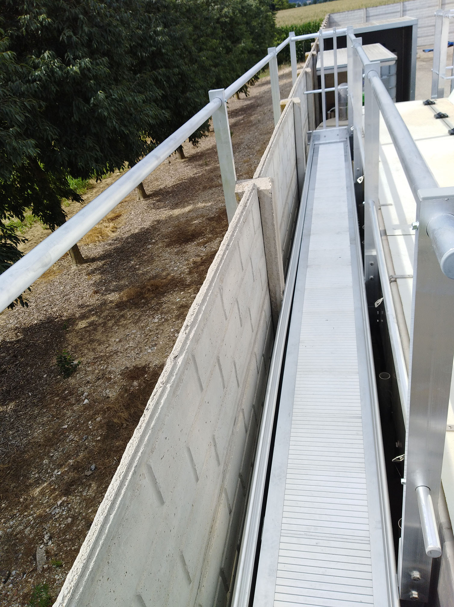 Per eseguire rapidamente ed in sicurezza questa operatività richiedono la creazione di un camminamento perimetrale al macchinario, alla stessa quota del coperchio.