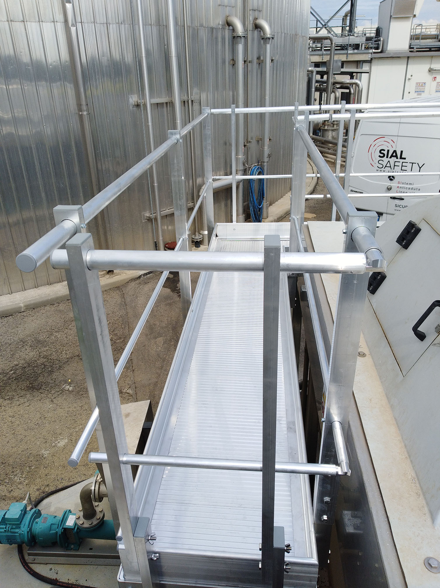 Per la passerella utilizziamo la linea produttiva SICURGUARD WALK®, conforme alla norma UNI EN ISO 14122-2:2016.